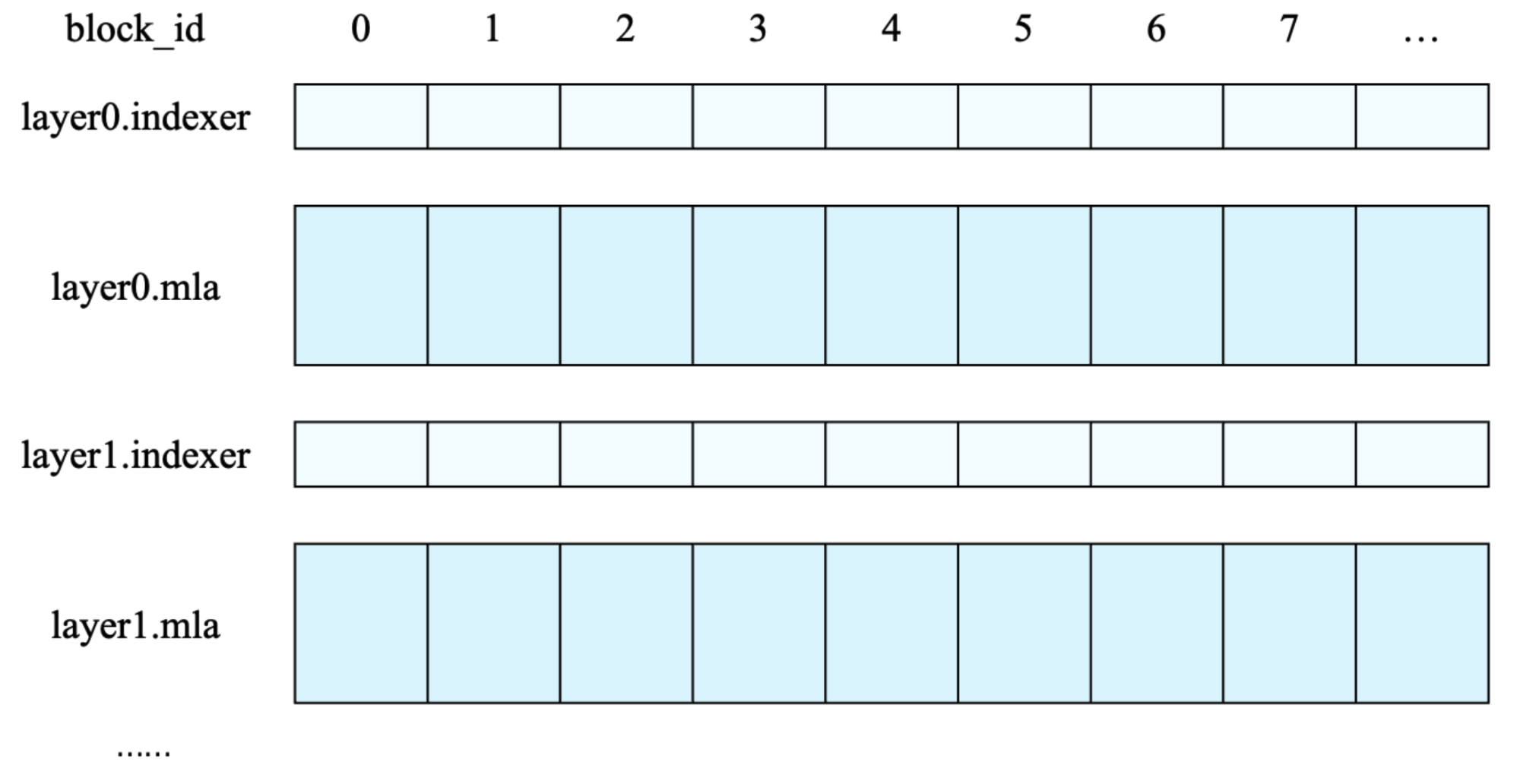 However, for the indexer key cache, it is stored on a per-block basis. This is one of the reasons we only support block size 64 for this model; the other being that FlashMLA is tailored to it as well. The first block_size * head_dim entries contain the value, the rest contain the scaling factor: