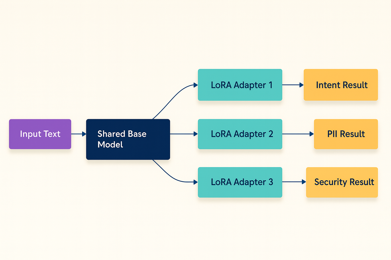 LoRA addresses a fundamental inefficiency in the previous system. When a classification system needs to determine intent, detect PII, and check for security issues, the naive approach runs three separate fine-tuned models: